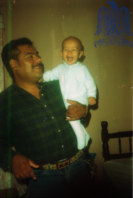 Negativo de un papá cargando a su hijo