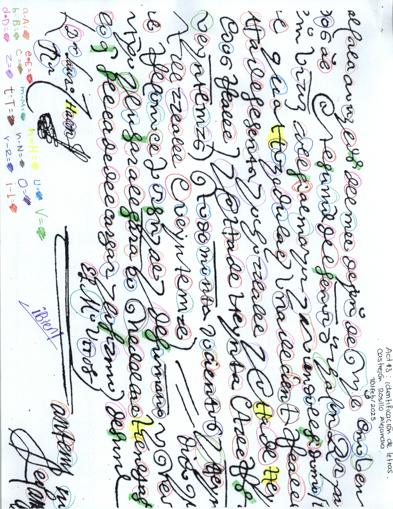 Trabajo escolar de la materia de paleografía, constaba de identificar las letras de un documento antiguo