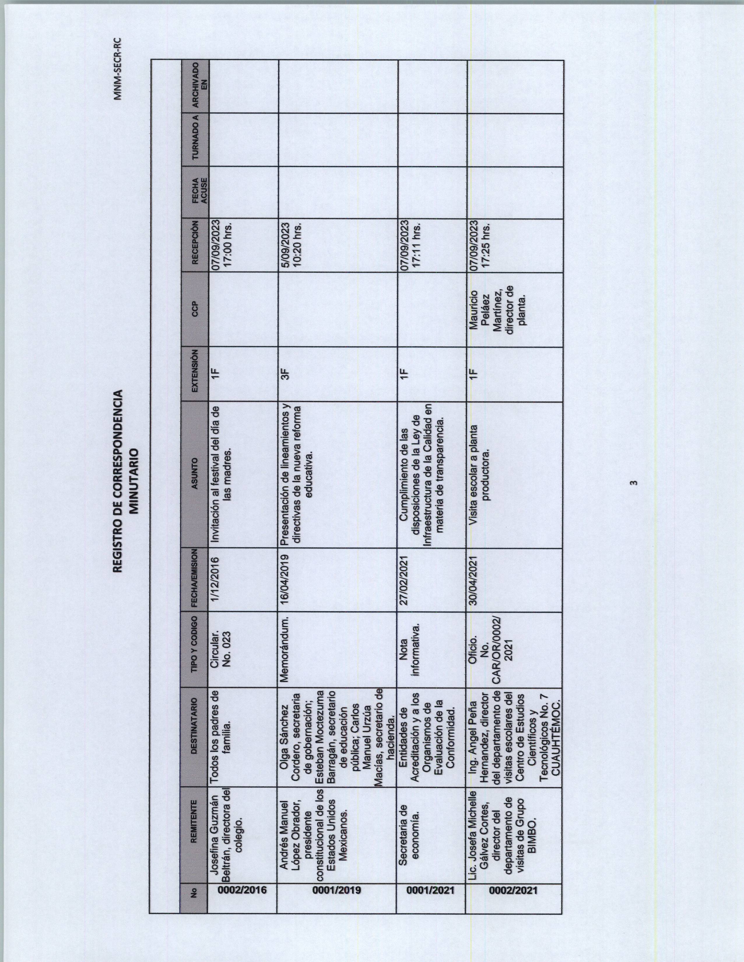 Registro de correspondencia