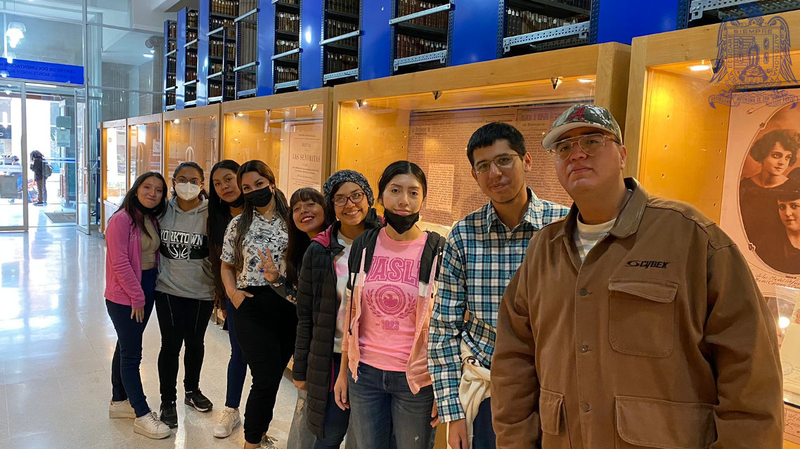 Fotografia donde se muestra a alumnos en su visita al archivo historico