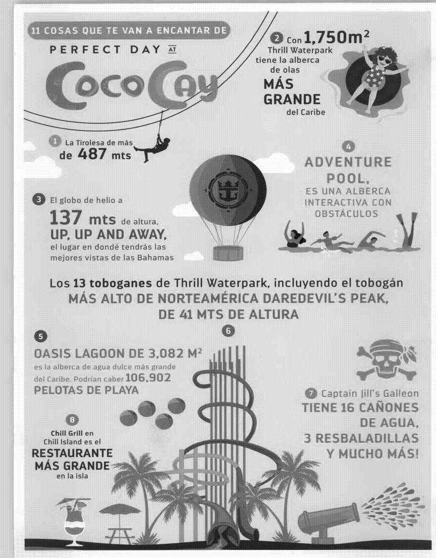 5. "OASIS LAGOON DE 3,082 M², es la alberca de agua dulce más grande del Caribe. Podrían caber 106,902 PELOTAS DE PLAYA" - Una impresionante piscina de gran tamaño.