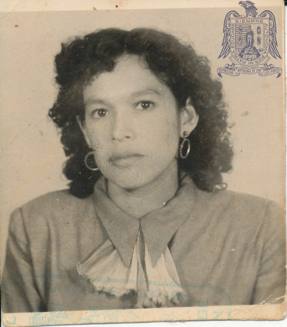 Fotografía en blanco y negro de una mujer con aretes y cabello ondulado