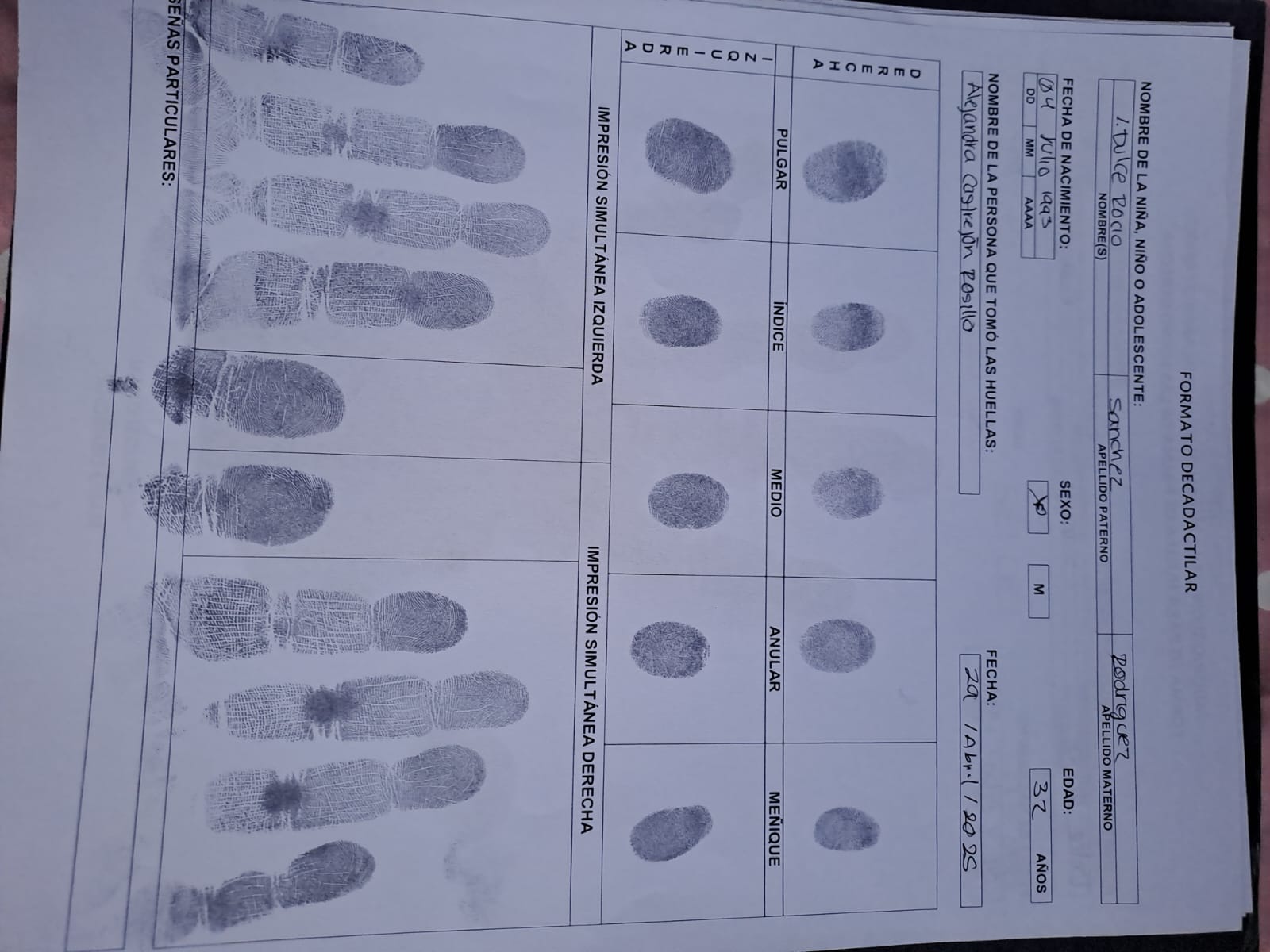 Huellas dactilares de Dulce Rocío Sánchez Alvarado