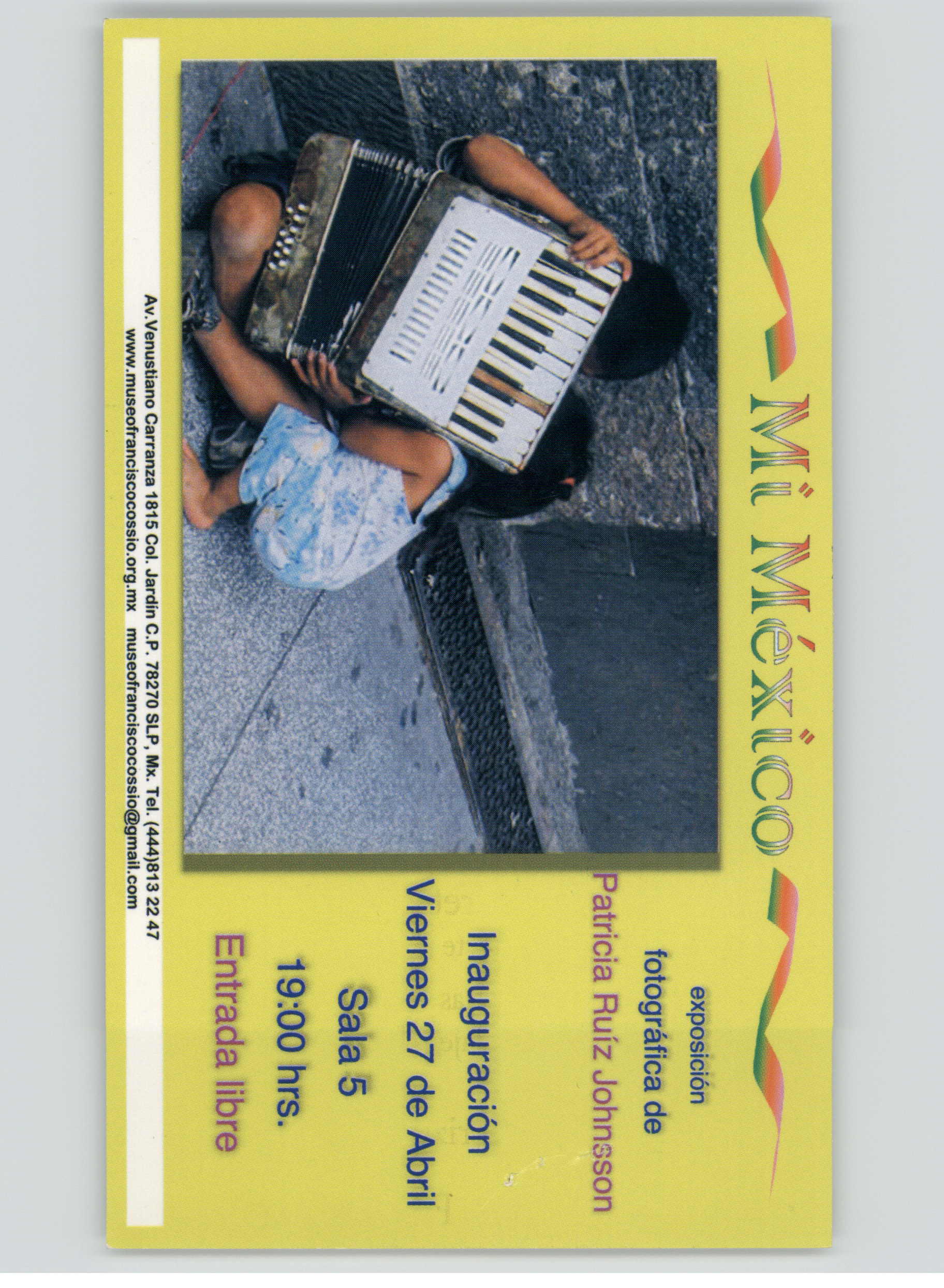 Esta postal es una invitación para una exposición fotográfica de Patricia Ruíz Johnson a las 19:00 hrs en la sala 5