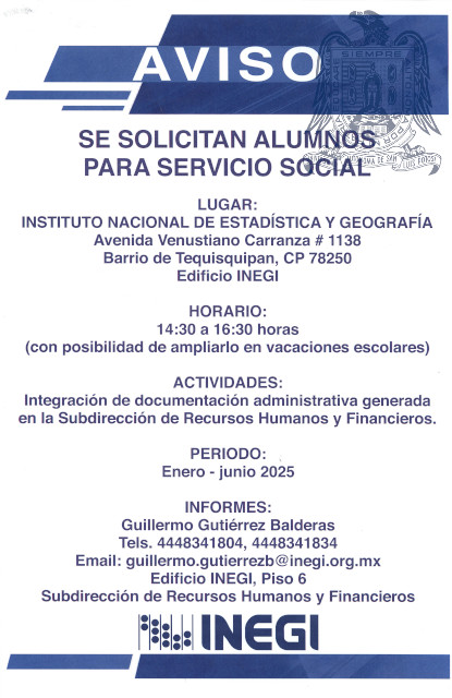 Solicitud para servicio social, INEGI, Subdirección de Recursos Humanos y Financieros