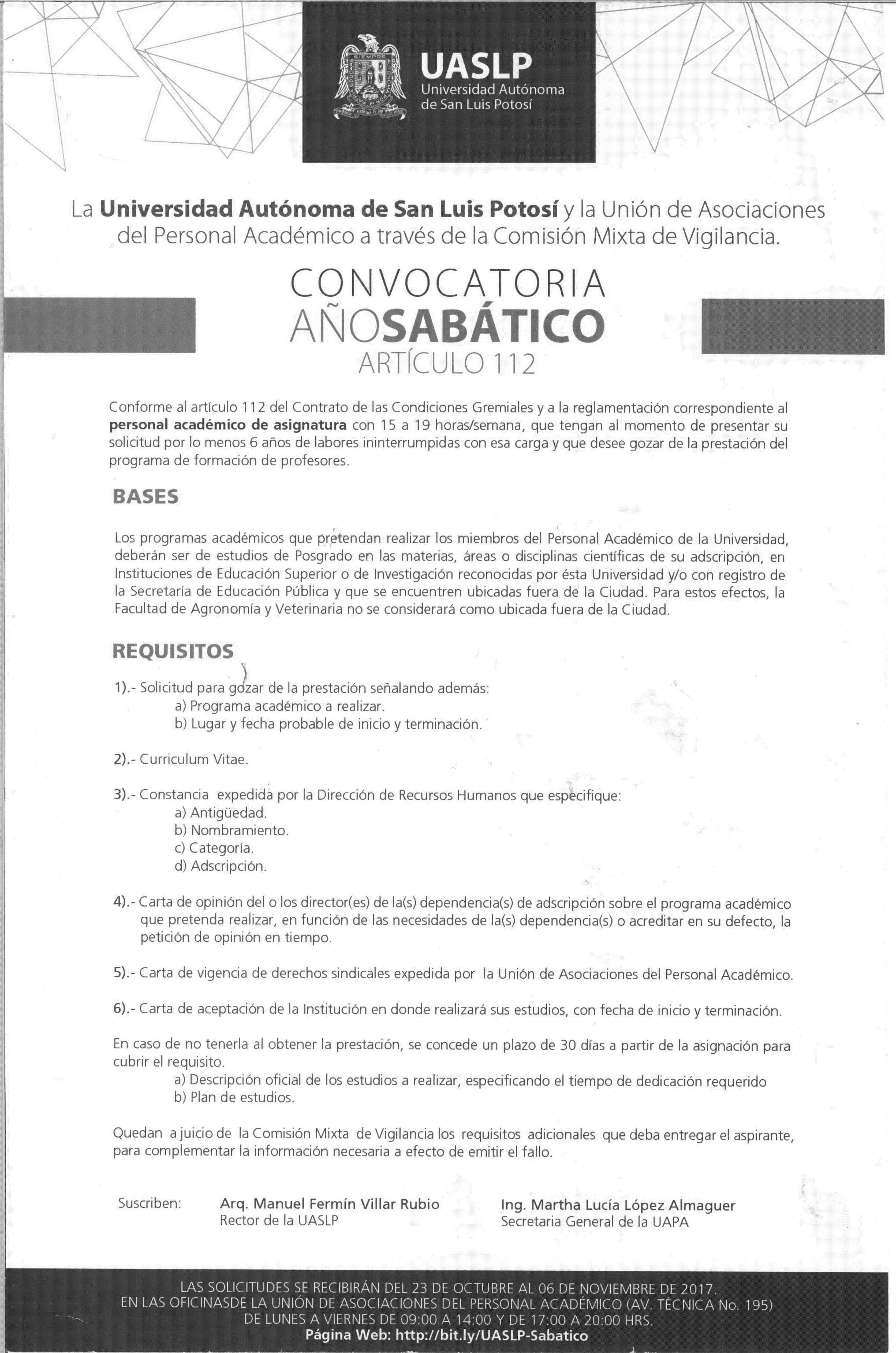Convocatoria Año Sabático (UASLP)