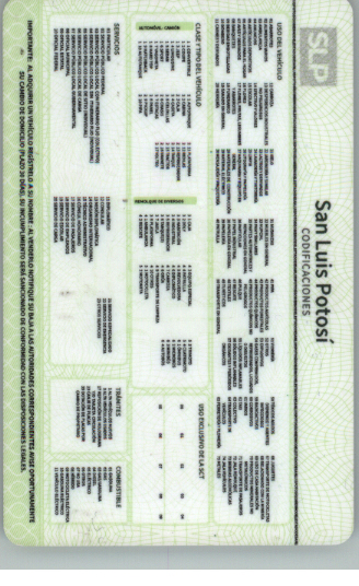 PARTE TRASERA DE MI TARJETA DE CIRCULACION