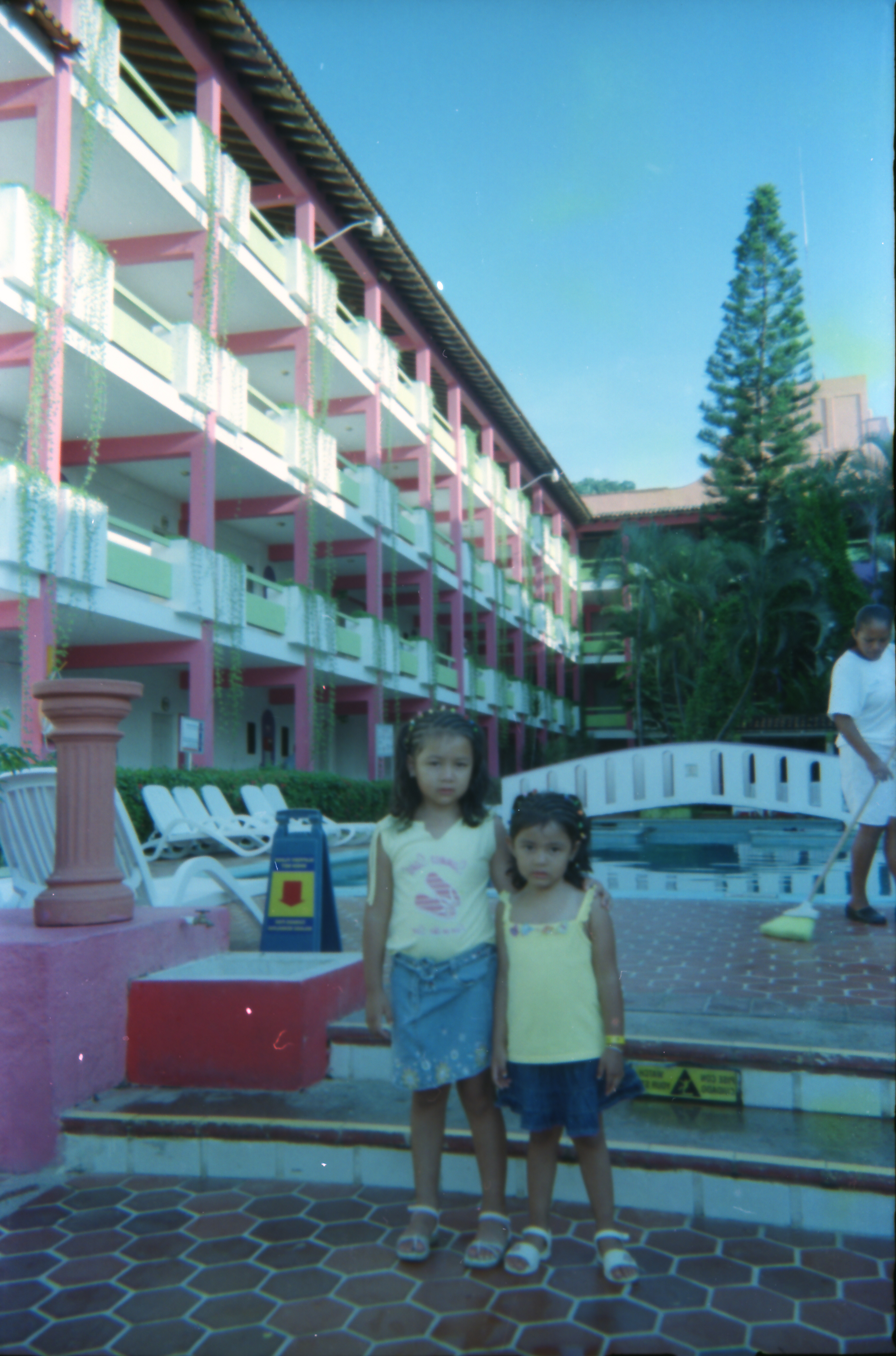 Imagen que muestra a dos hermanas abrazándose en un entorno de piscina, probablemente durante un día de recreo o vacaciones. La fotografía transmite afecto, complicidad y unidad familiar, reflejando los lazos fraternos en la infancia. La autora captura un instante íntimo que resalta la importancia de las relaciones familiares como espacios de contención emocional y socialización.