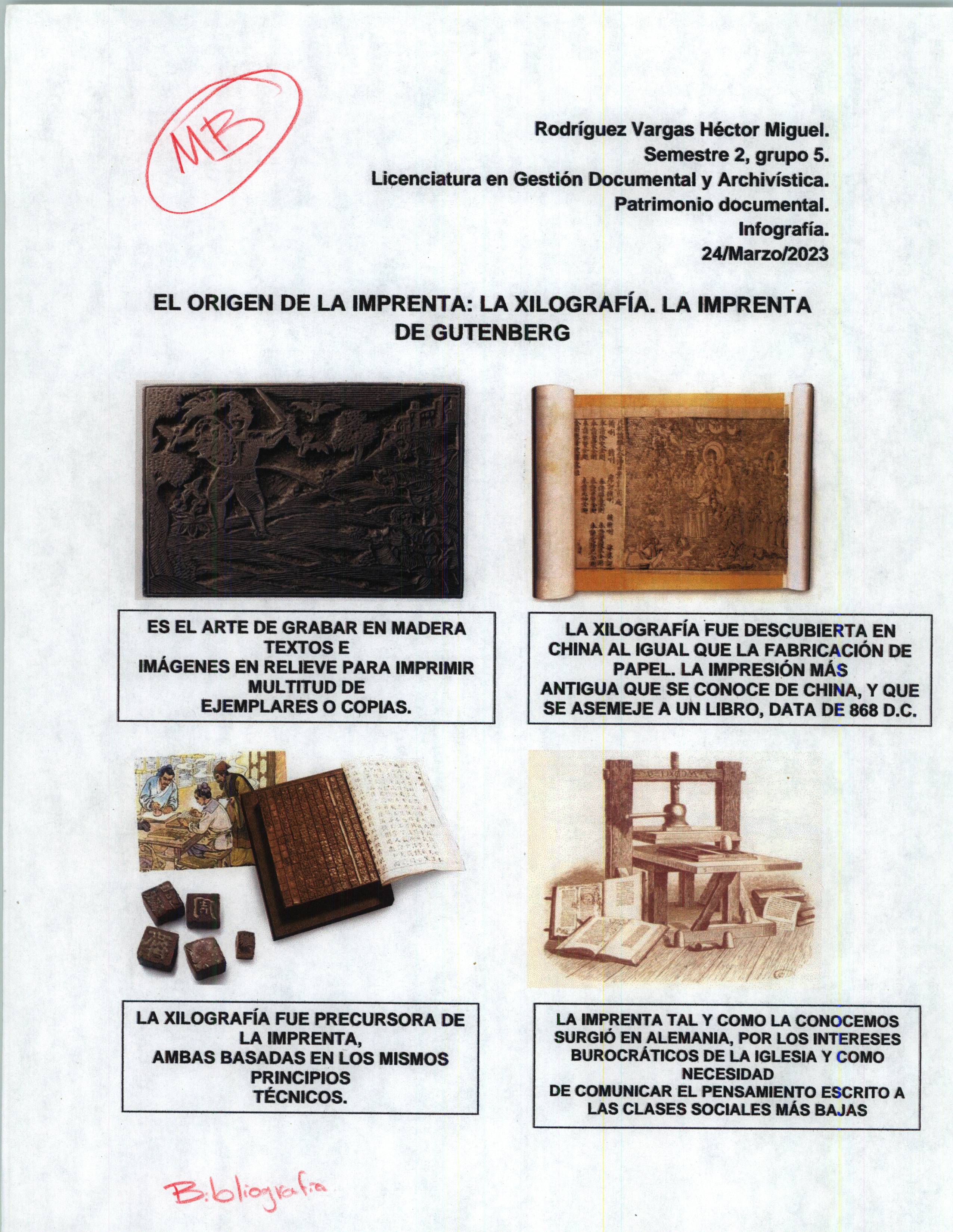 Infografía sobre el origen de la imprenta y xilografía para la materia de Patrimonio Documental