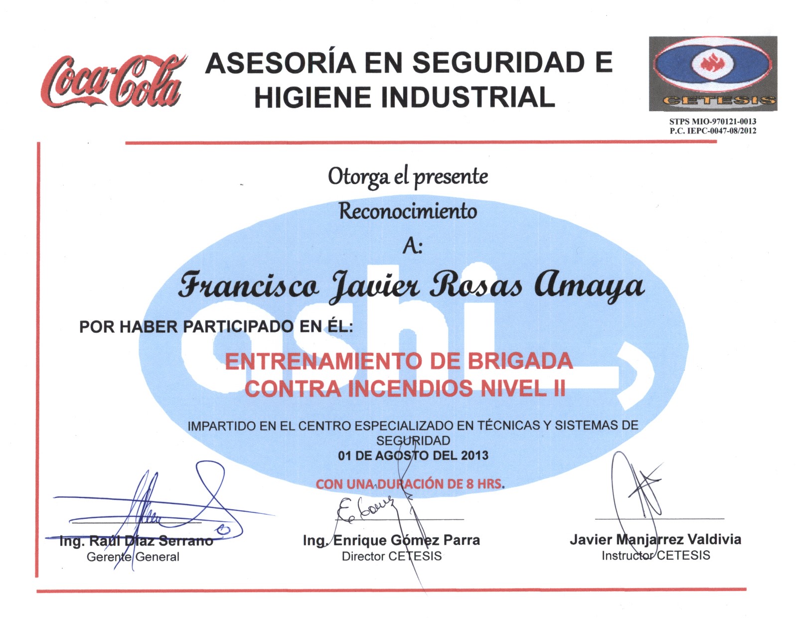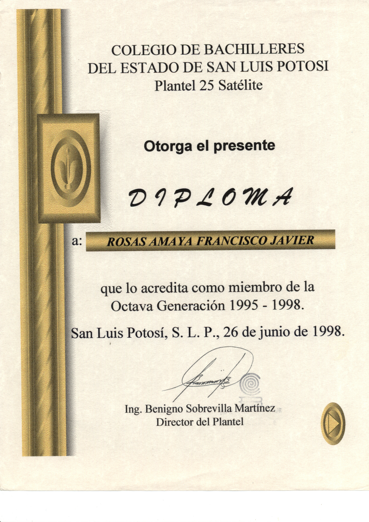 En este expediente se encuentran reunidos diversos diplomados, certificaciones y reconocimientos obtenidos por el ingeniero Francisco Javier Rosas Amaya a lo largo de su trayectoria. Estos documentos reflejan su participación en distintas actividades, tanto en el ámbito académico como en el laboral. Hay desde cursos de actualización y especialización, hasta reconocimientos por su desempeño profesional