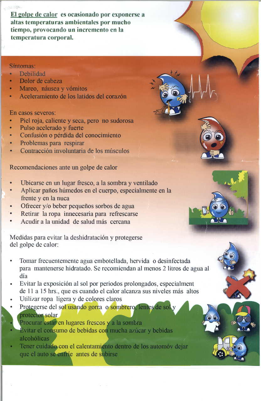 Cartel del centro de Salud sobre el golpe de calor en tiempos de temperaturas altas