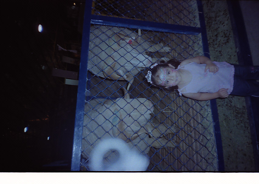 FENAPO 2006 (Feria Nacional Potosina) podemos encontrar a una infante de 3 años (Brenda Guadalupe Rodriguez Garcia) posando para una foto con los borregos, el papa le esta tomado la foto (Armando Rodriguez Hernandez)