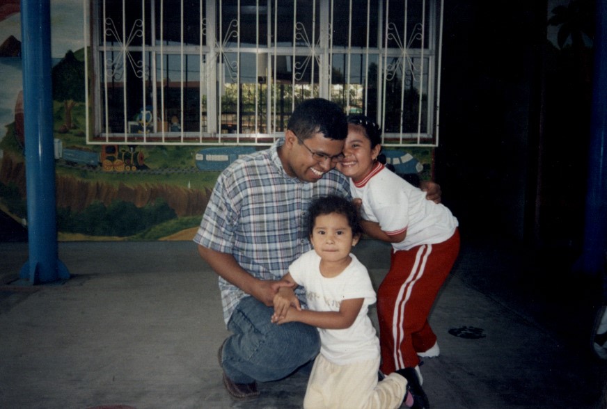 En esta fotografía se captura un emotivo momento durante un evento escolar con motivo del Día del Padre. En la imagen aparece un padre de familia acompañado por sus dos hijas, compartiendo juntos una actividad especial organizada para celebrar esta fecha tan significativa
