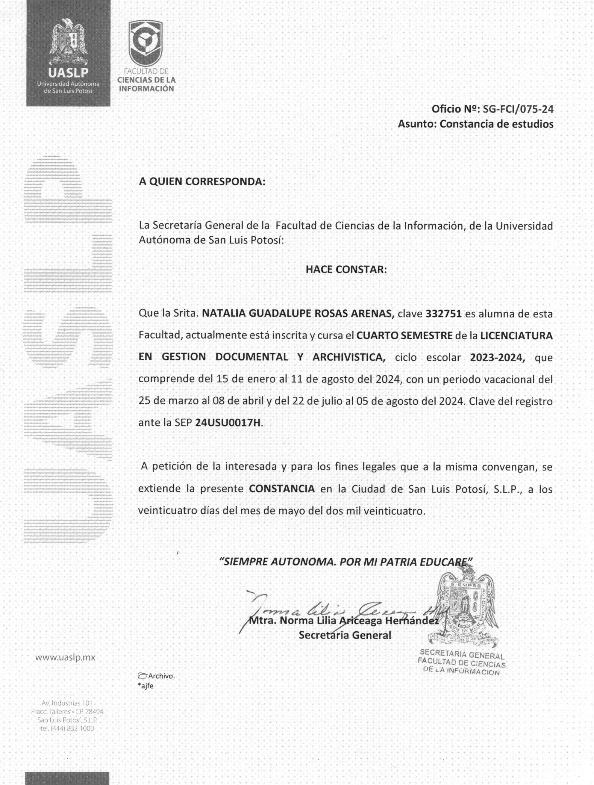 Rosas Arenas, Natalia Guadalupe