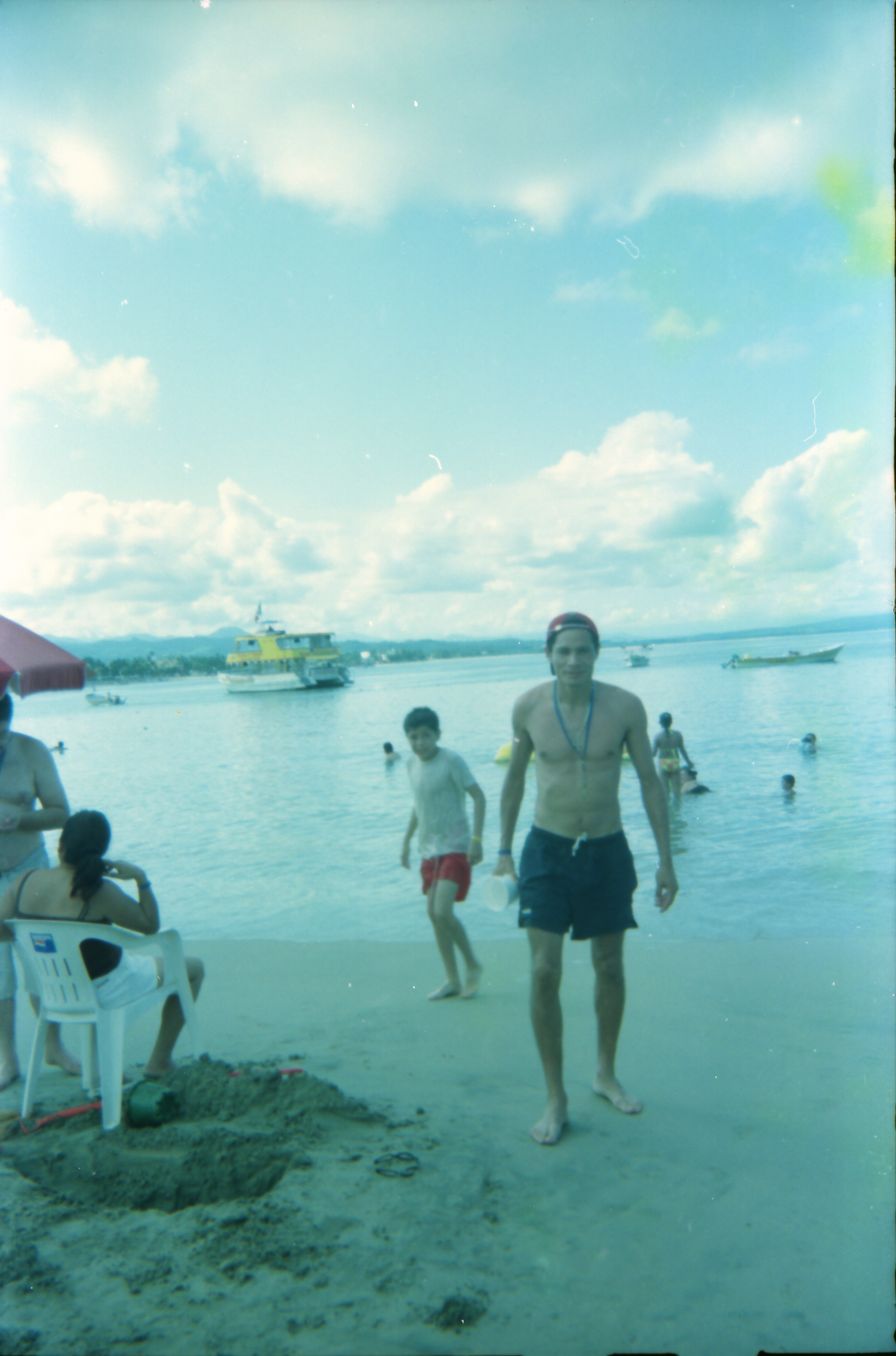 Instantánea que capta a un hombre saliendo del mar, posiblemente después de nadar. La fotografía se sitúa en un contexto vacacional y muestra la interacción del cuerpo humano con la naturaleza. El retrato sugiere una sensación de libertad, disfrute y conexión con el entorno marino. La luz y el movimiento captados aportan vitalidad a la imagen, subrayando su espontaneidad.