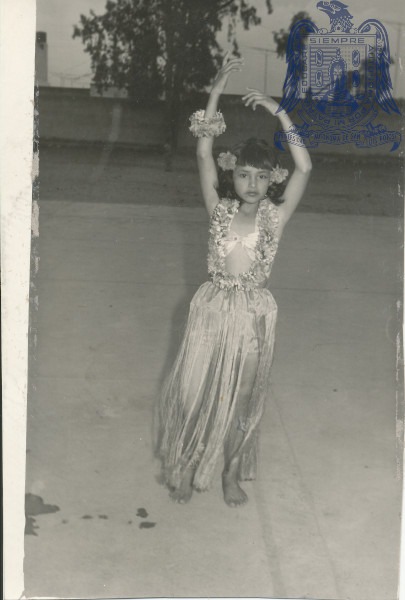 Niña disfrasada de hawaiana
