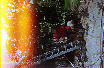 Fotografía que captura a Héctor Rodríguez de niño enfrente de un árbol tocando una cabra bebé
