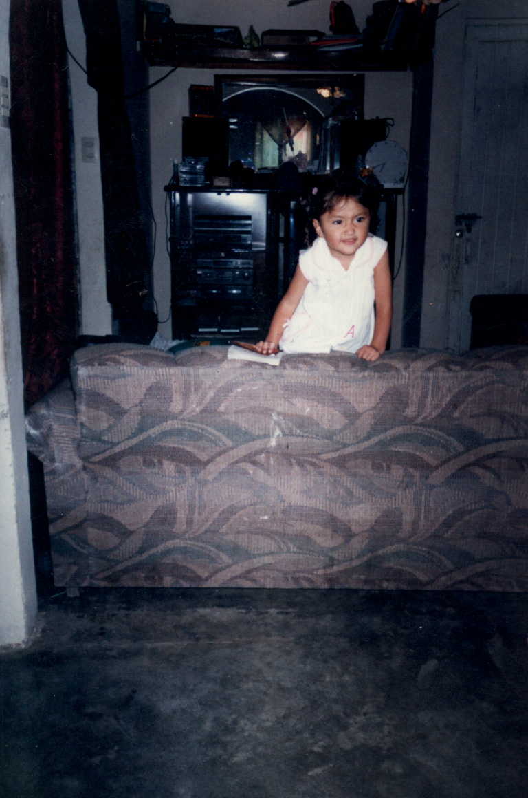 Muestra a una niña con expresando desagrado, donde se le ve en la sala de estar de un domicilio