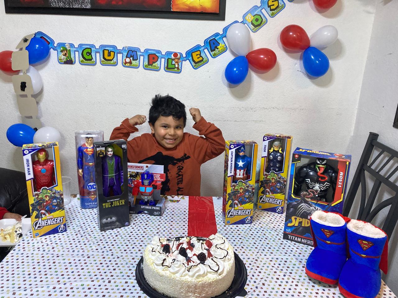 Fotografía festejando el Cumpleaños de Marlon Mateo Villela Medina con decoración de Mario Bros y regalos sorpresa