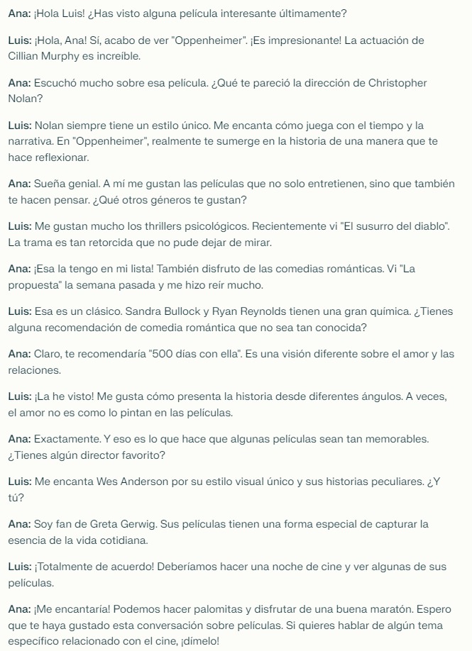 Conversación entre Ana y Luis sobre su opinión de diversas películas.