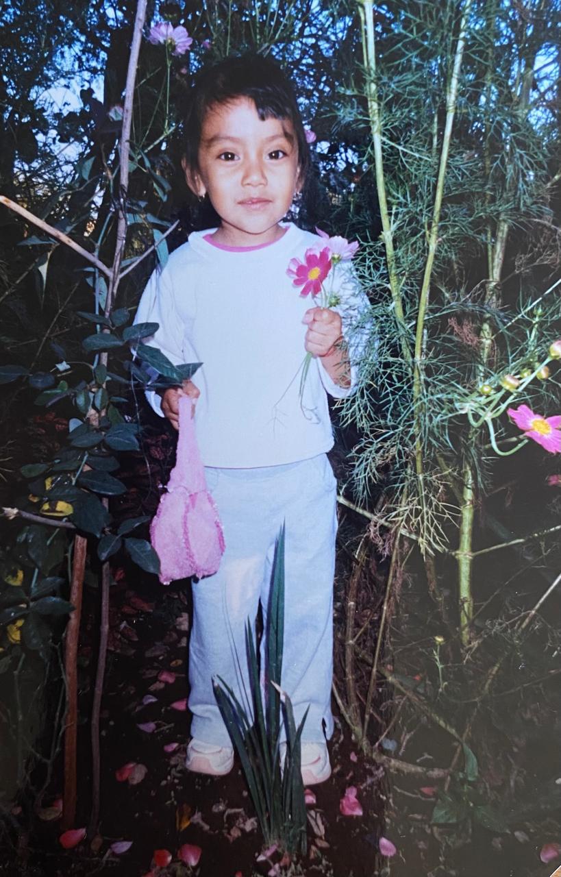 Pertenece a un registro de fotografía tomada de una niña en un jardín