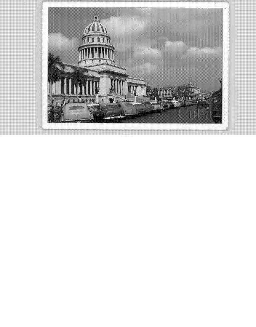 Esta postal vintage revela la majestuosidad del Capitolio Nacional de Cuba. El Capitolio es uno de los edificios más emblemáticos de La Habana. La estructura domina la composición con su impresionante cúpula neoclásica que se eleva hacia un cielo parcialmente nublado. La fotografía está tomada desde una perspectiva que permite apreciar la grandiosidad arquitectónica del edificio, inspirado en el Capitolio de Washington D.C., aunque con características propias.