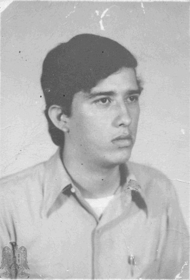 Fotografia blanco y negro de Efrain Cruz en la universidad