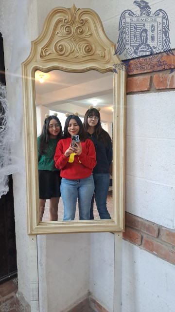 Foto tomada en un espejo con disfraces
