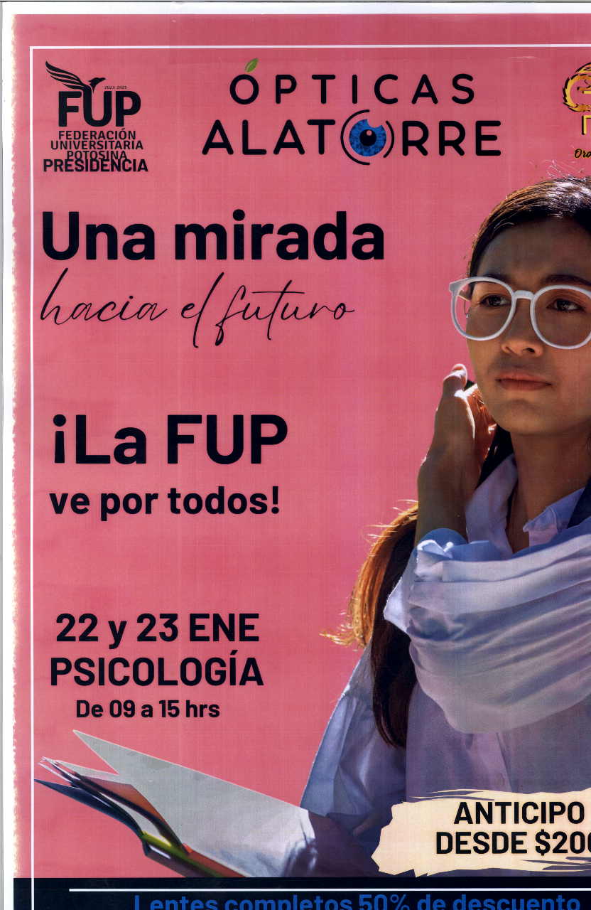 Publicidad para compra le lentes en la opticas alatorre con anticipo de 50%