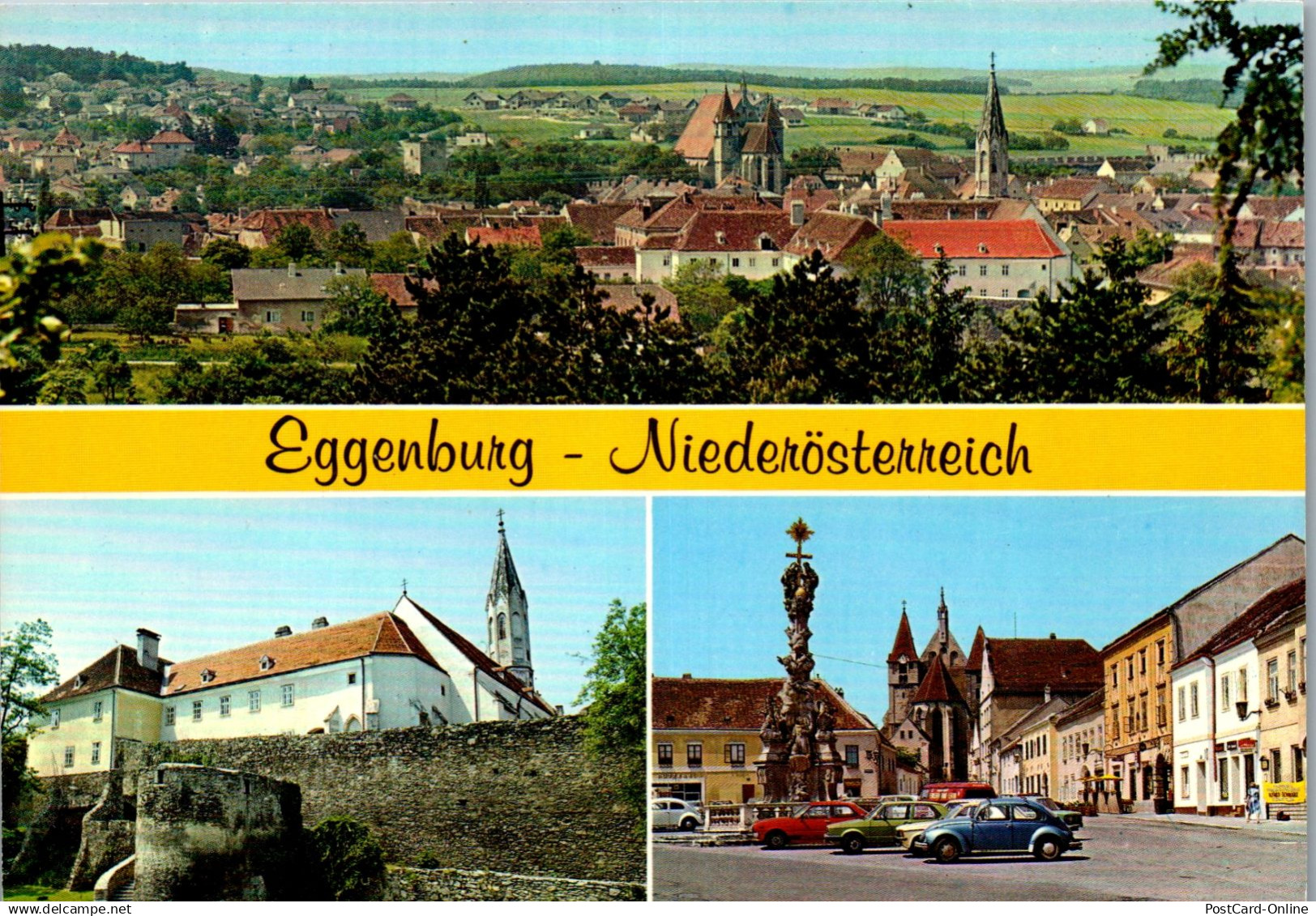 Postal de Eggburg donde se muestra uno de sus paisajes y carros de la época.