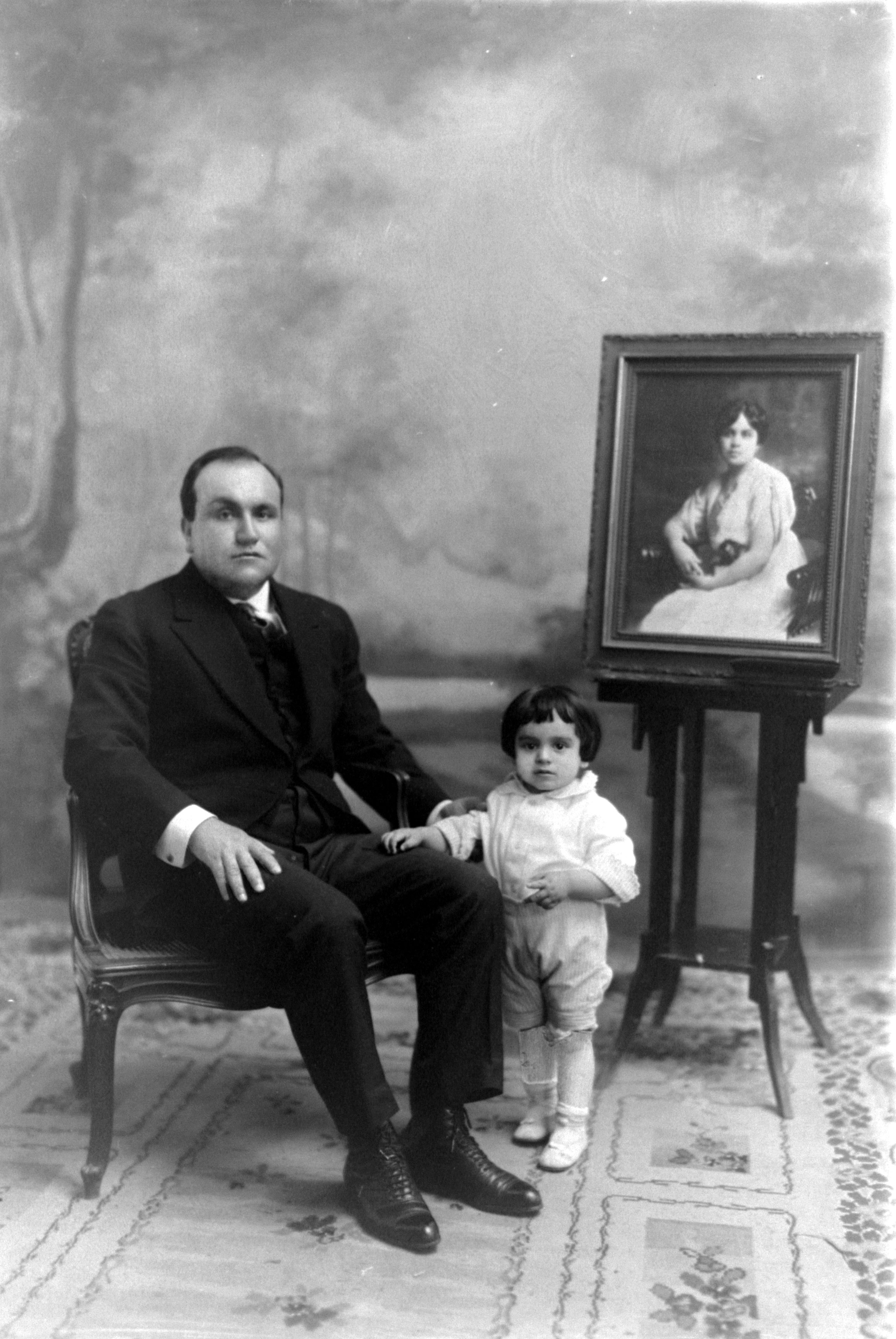 Jesús Patiño con su hijo Raúl Patiño Espinoza y su esposa en el retrato, Jaral del Progreso, Guanajuato, México, de la colección Rutilo Patiño