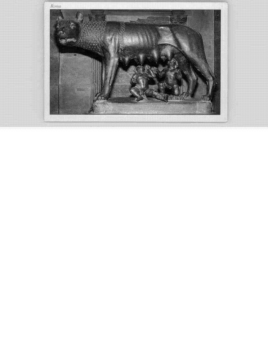 Es un cartel  en blanco y negro de uno de los símbolos más emblemáticos e históricos de la ciudad de Roma: la famosa escultura de la Loba Capitolina. En la parte superior de la postal se puede distinguir la palabra Roma, identificando claramente el origen y ubicación de este monumento icónico.