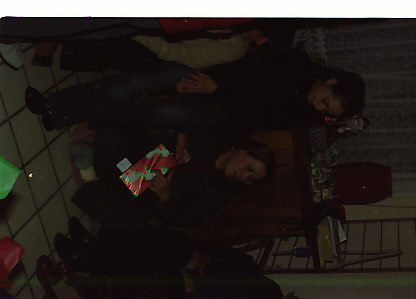 | dc.description | La imagen muestra una escena en interiores, probablemente una reunión familiar, Se observan varias personas sentadas o agachadas en el suelo; una mujer en el centro sostiene un objeto envuelto en papel de regalo con diseño colorido (rosado con blanco y verde). El entorno sugiere un espacio doméstico: hay un mueble con objetos decorativos y una cortina blanca en el fondo. También se ve un garrafón rojo de agua sobre un dispensador. En la parte inferior de la imagen, se alcanzan a ver más personas sentadas. | |
