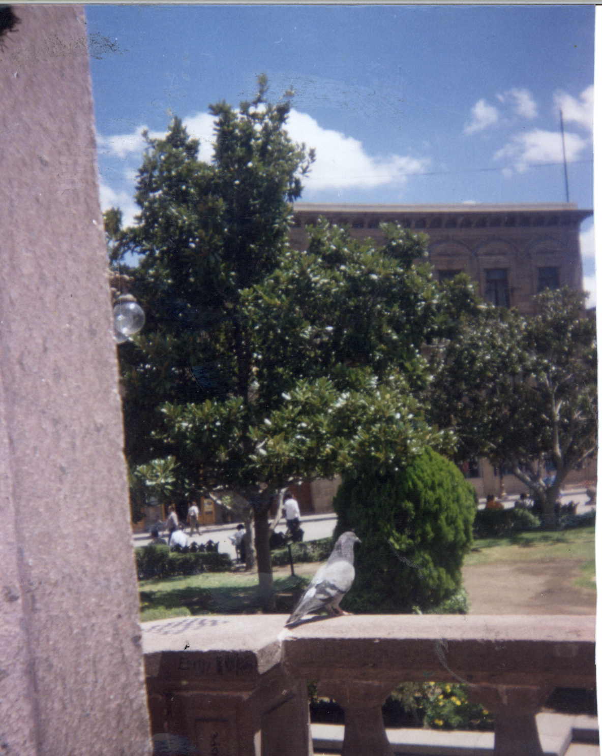 Imagen urbana o de una estructura construida por el ser humano, como un edificio, monumento o espacio arquitectónico con detalles visibles en su diseño y una paloma.