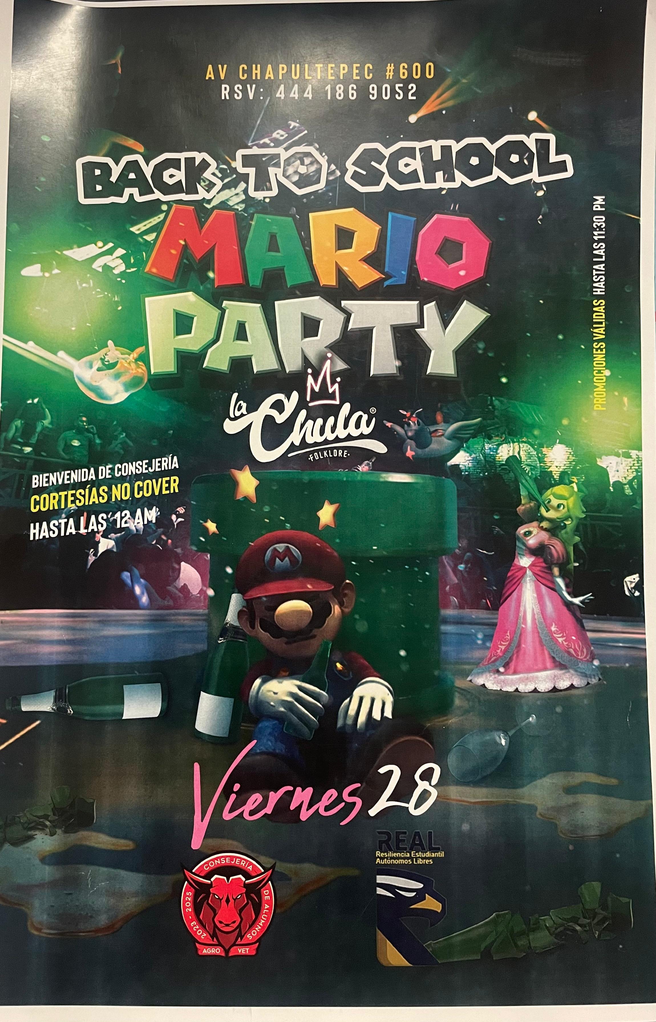 Cartel que invita a asistir a fiesta de inicio de cursos, organizada por la Resiliencia Estudiantil Autónomos Libres, en antro "La Chula".