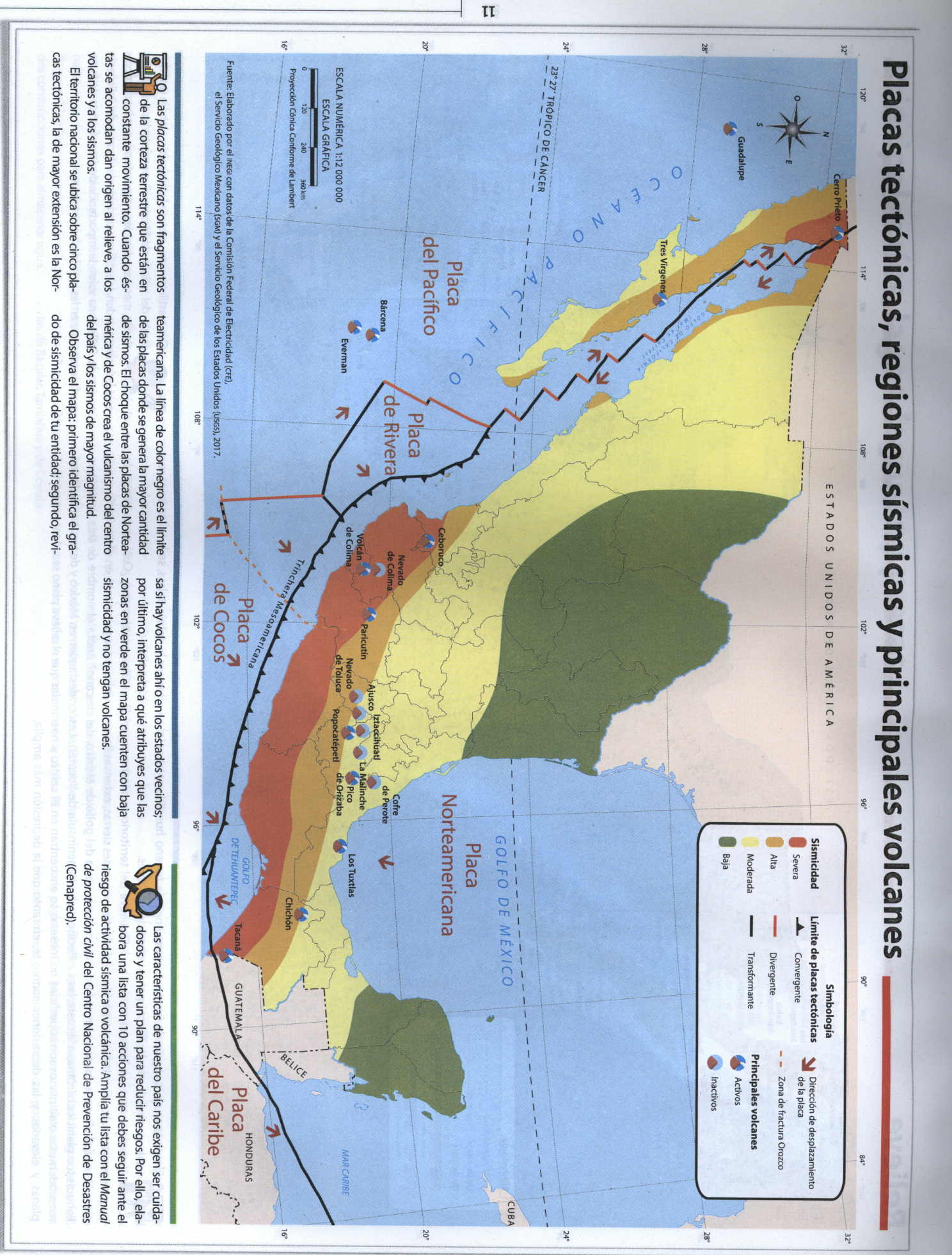 Placas tectónicas, Regiones sísmicas, Volcanes, México