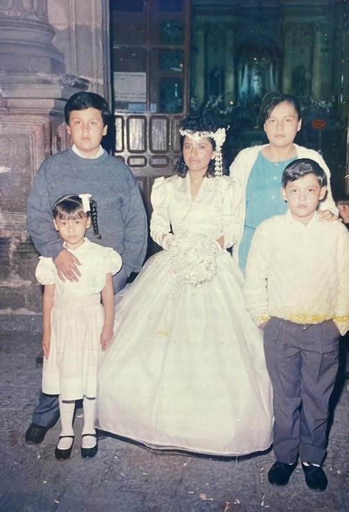 Fotografía del año 1990, retrato de esposa y familia invitada